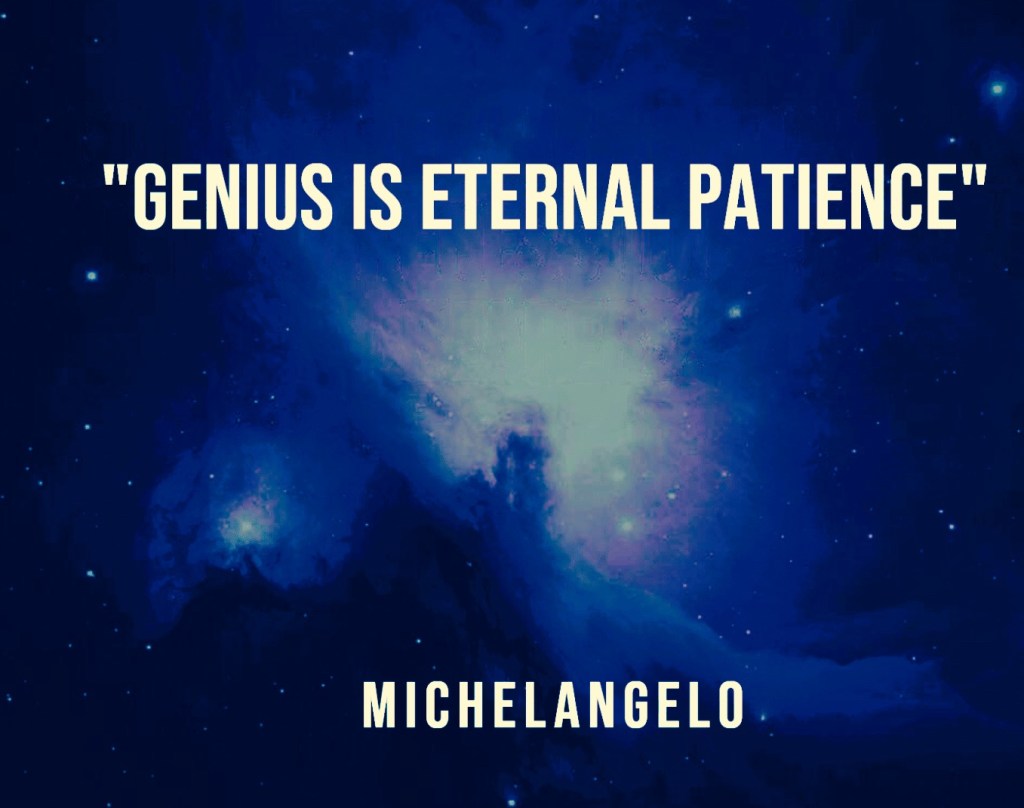 Michelangelo said “genius is eternal patience”. When you are patient, you see new ways of moving ahead. New ways of thinking.
